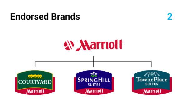 但是,您需要非常小心,因为这种方法很快就会变得一团糟,组织的投资组合看起来更像是科学怪人。这就是为什么我要为您提供第二个使用认可品牌架构方法的示例,它实际上更好地说明了它应该如何使用——查看万豪的品牌架构。