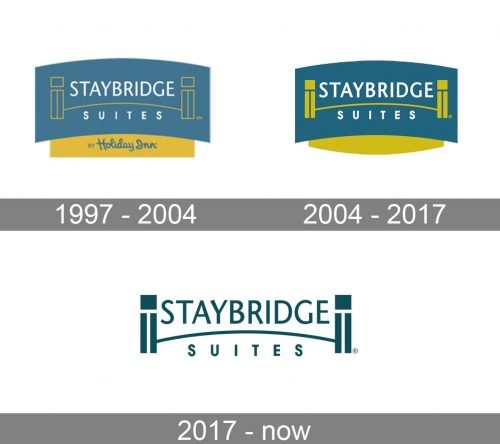 Staybridge Suits 豪华酒店logo设计的调色板包括海蓝色、浅金色和白色。标志本身非常经典和优雅,带有复杂衬线的字标和建筑元素的图像。图像部分包括列和它们之间的桥梁。桥将字标水平分成两部分,代表品牌名称。酒店标志设计代表了该品牌对服务和款待的真实态度,同时为客人提供所有现代设施和设计解决方案。